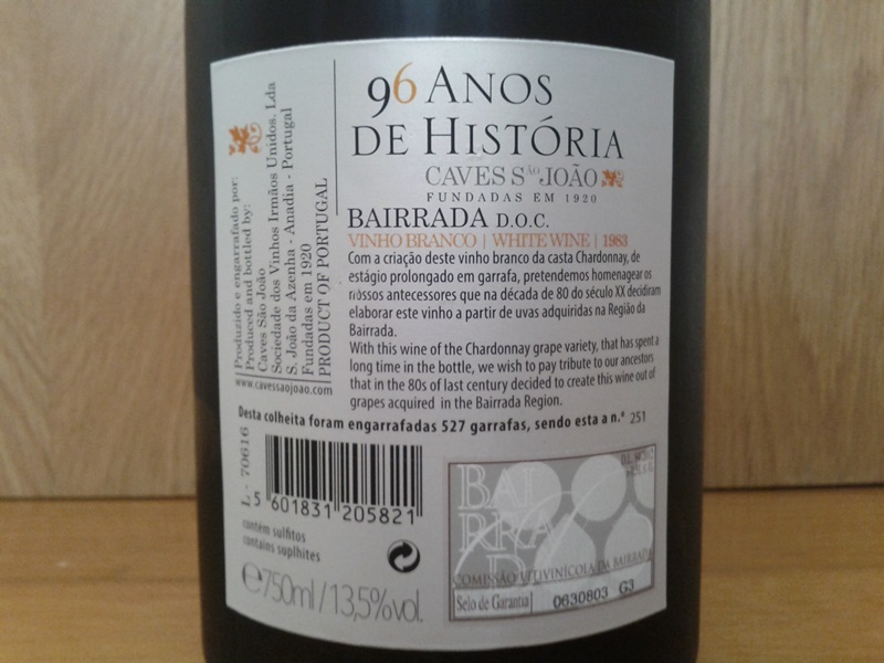 “Caves São João” are celebrating the decade before their 100th anniversary, with an annual launch of a special wine, referring to the decade in question. After the “arinto” (very good by the way) of last year, this year, to commemorate the 96th anniversary, and having the 80’s as a backdrop, they decided to launch a Chardonnay even from the 80’s !!!!! … a barrel that was lost for a long time …