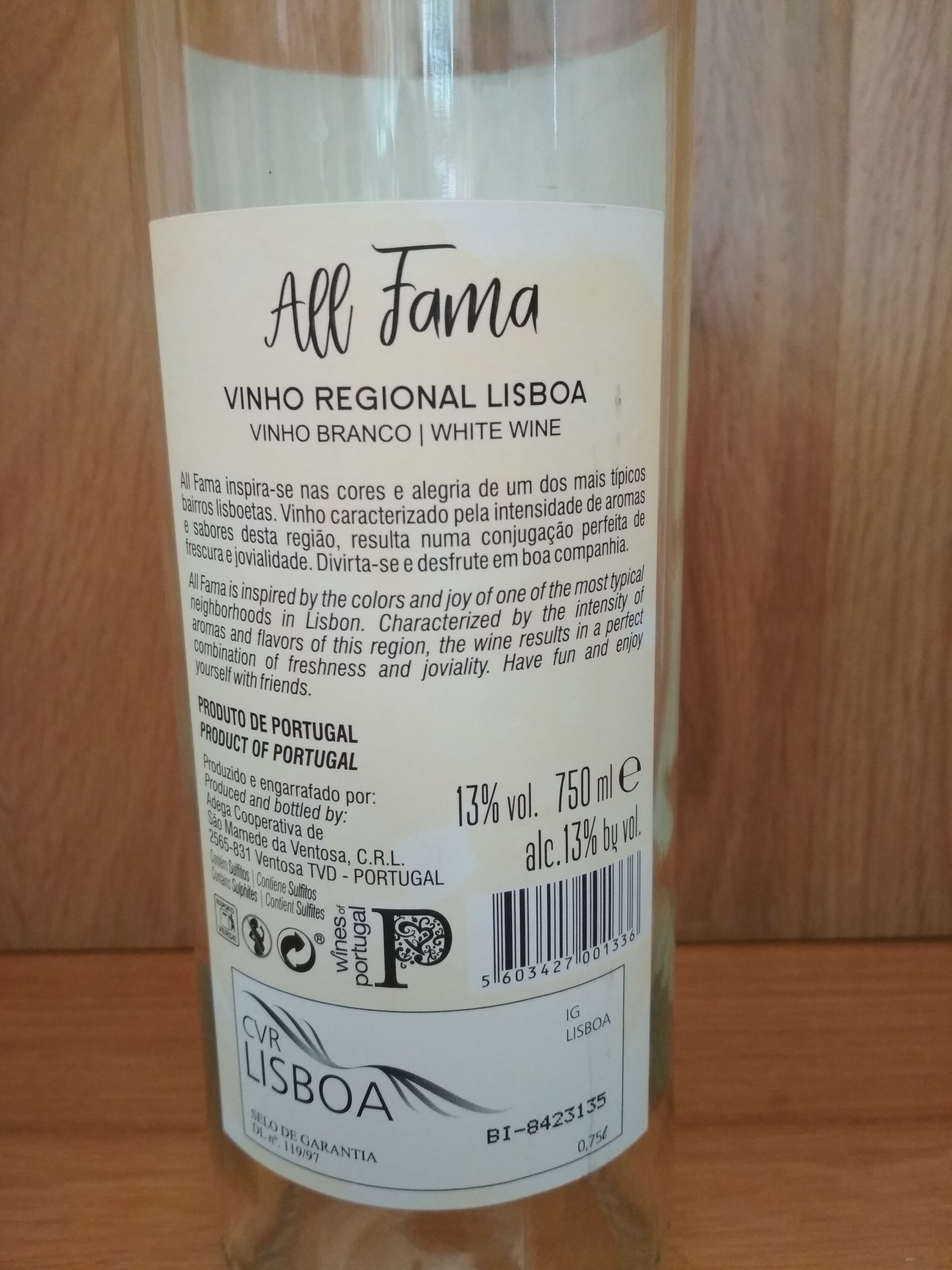 When we look at the label we already know what to expect. A wine for tourists! Fruity aroma, in the mouth is very light, sweet … the so-called swimming pool wine. But maybe it tastes well, in the heat of a terrace in Lisbon … We know it’s 2017 because we had access to the data sheet (because it does not come on the label); and we only know that it is Fernão Pires grape varietal for the same reason … And it’s a pity the end, a bit unpleasant, which would not be expected. In short: a wine on the threshold of drinkable.