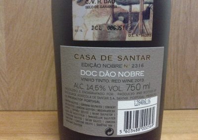 As previously mentioned (regarding the white wine) was the first time that 2 wines were awarded this distinction (Dão Nobre). This red was one of them. Blend of “Touriga Nacional”, “Alfrocheiro”, “Aragonês” and “Jaen”. Aroma to red fruits, cocoa and some wood. In the mouth is very velvety, with very fine tannins and already domesticated. Also elegant and prolonged finish. It is certainly a wine that everyone will enjoy. You can drink it now or save it. A good wine really … But the truth is that I already drank several “Dão” wines better than this …