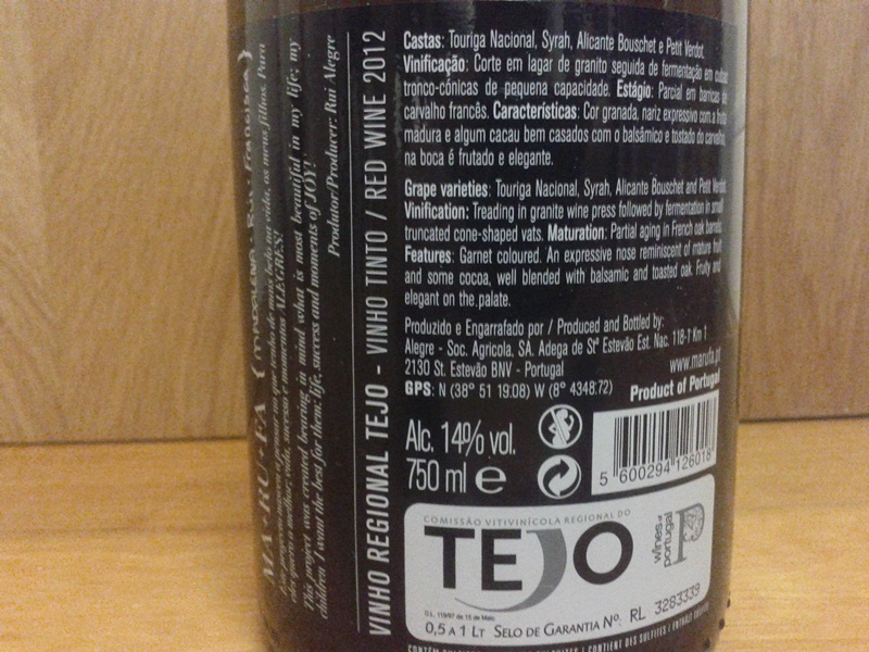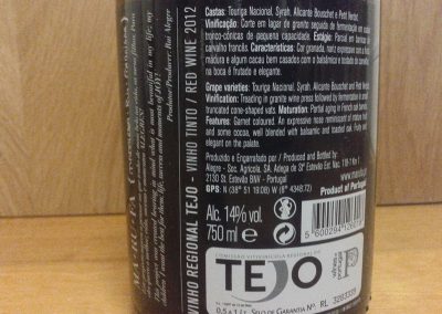The name of the wine comes from the initials of the producers’ children, with vineyards in “Santo Estevão”, in the area of Benavente. The wine has 4 varieties: Touriga Nacional, Syrah, Alicante Bouschet and Petit Verdot. Very concentrated color. Aroma of ripe fruit. In the mouth it’s heavy and somewhat tasteless. Too much body and little taste. Very tannin. The end is forgettable but not rough. Still, the wine is not bad at all and it has a profile that some people appreciate.