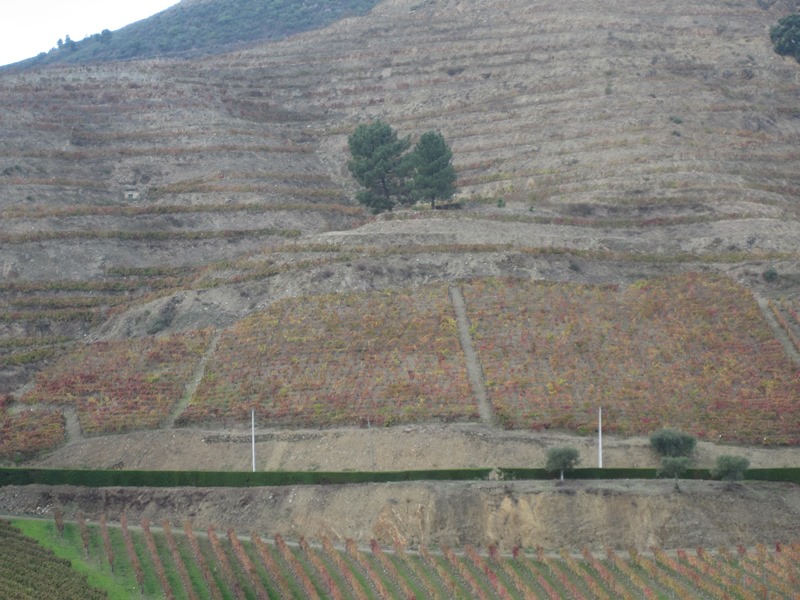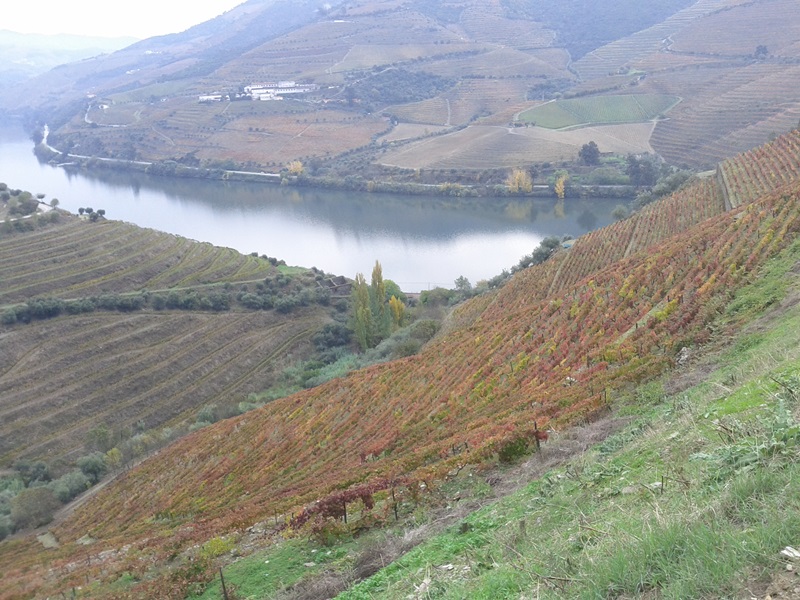 It is not easy to get to the “Crasto”. It’s the way it’s called by those bands, “Quinta do Crasto”. It seems that there is a slightly easier way to get there: leave directly from the A24 in the direction of “Sabrosa”. But we were in “Pinhão” … And then we had to get on the way. Along this narrow road, on the north bank of the river “Douro”, towards “Covas do Douro”. We passed through “Quinta de la Rosa”, then through “Quinta do Porto” (from where tawnys and others go to “Ferreira”), we passed other farms and places, we inflected to the interior, leaving the river for moments, until we reached “Covas do Douro” … Then we continue our trip, the “Douro” was there again, we cross the junction to “Quinta da Veiga”, but we continued down to “Quinta Nova”. After we have passed this one, we know that we are not far. We descended until we were almost at the level of the river … then we went up again, and when we saw the “Quinta da Marka”, we also saw the “Crasto”, first the iconic “Vinha Maria Teresa”, with its autumnal aspect … In short, it is 30 minutes from “Pinhão”, to travel a few kilometers …