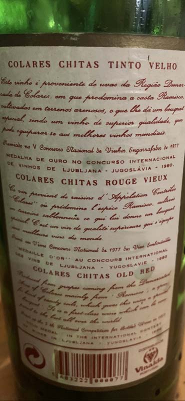 Para terminar, queria salientar a capacidade de envelhecimento dos vinhos de Colares, aguentando até as condições mais difíceis, sabe-se durante quanto tempo…