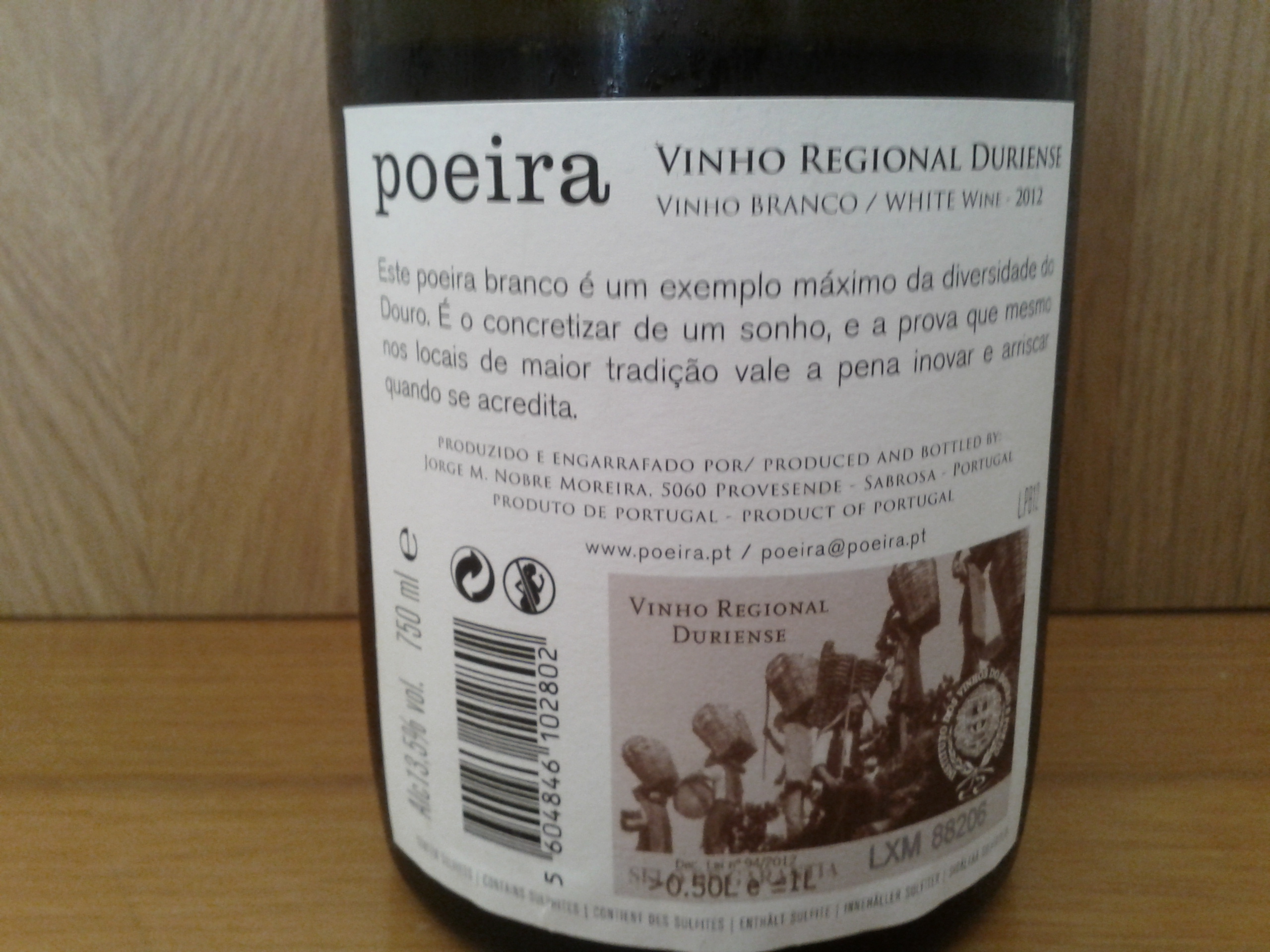 Há cerca de 2 anos atrás Jorge Moreira brindou-nos com uma novidade: O Poeira branco! Já existia antes o Pó de Poeira (branco). Mas foi com a colheita de 2012 que surgiu esta novidade com pouco mais de 2500 garrafas.
