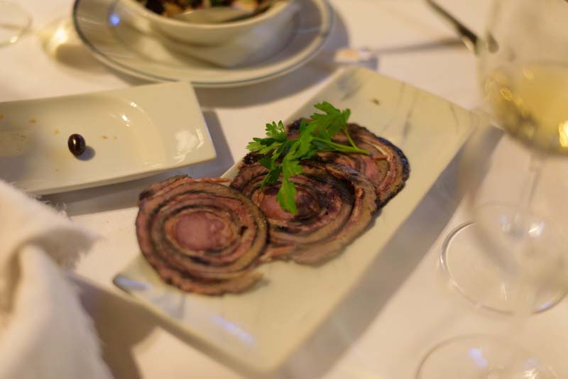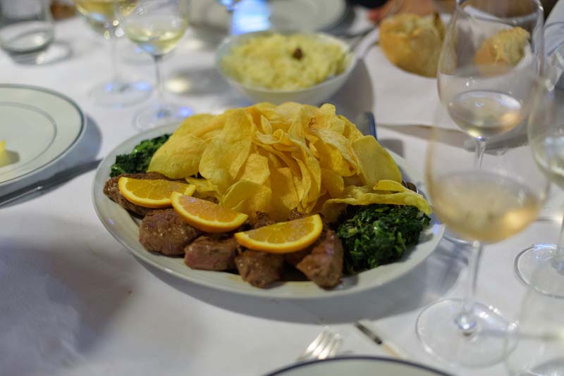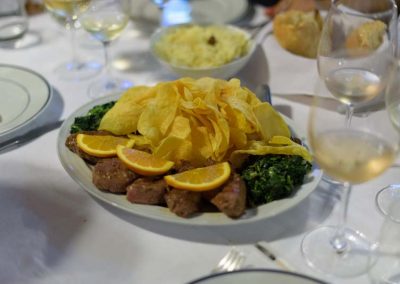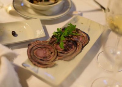 Para harmonizar com a prova dos vinhos Soalheiro, realçamos aqui, como entrada, tiras secas de lampreia, um pitéu para nós desconhecido, mas que se revelou deveras saboroso e o famoso arroz de lampreia, que fez jus á fama e agregou mais uns adeptos. Para prevenir adeptos menos fervorosos da lampreia, carne de vitela na brasa, consensual e sempre agradável.