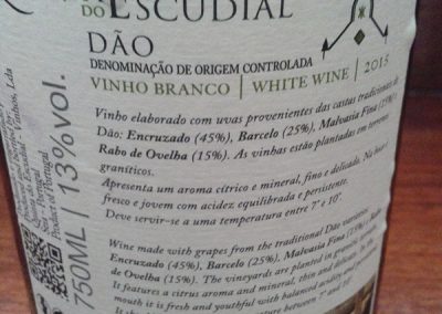 Este pequeno produtor de muito perto de Seia, mesmo no sopé da Serra da Estrela, tem algumas particularidades, e merece ser conhecido. Uma dessas particularidades, é que não usam madeira para envelhecer os vinhos. Ora, isso, pelo menos nos brancos, pode ser uma benção. Aroma cítrico, na boca é leve e frutado, agradável, pouco corpo e final aceitável. Um vinho branco muito razoável.