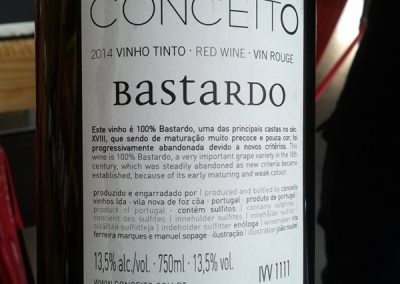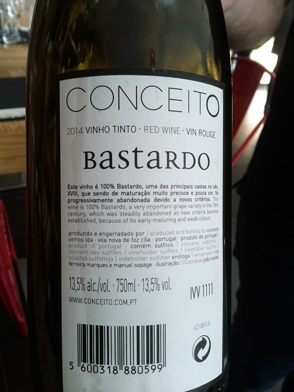 Then, to accompany some cheese and sausages, we ordered a relatively light red wine. We have once again accepted the suggestion: “Conceito Bastardo 2014”. The “Bastardo” is a caste that has been abandoned, and which is now being recovered by some producers. A pale red wine, reminiscent of a Pinot Noir. Aroma of cherries, in fact very soft but nice mouth. Anyway, we got the feeling that something is missing. It’s missing a little of soul.
