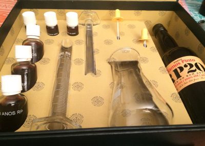 For this, all participants were presented with a quaint “Master blender” case. Inside it, which looked more like a mini chemistry lab that made me relive my high school days (with pipettes, beakers and even an Erlenmeyer flask), was a bottle of good Farm-back 20 years, to which we would have to add Then the salt and pepper (we had at the disposal samples of older blends, such as the 30 and 40 years, as well as small jars of very old harvests like 1924 and 1909!!!).