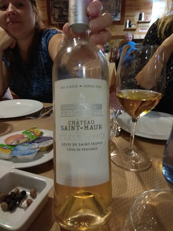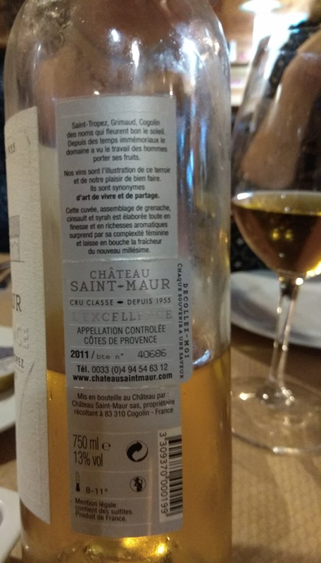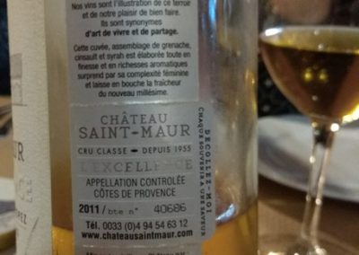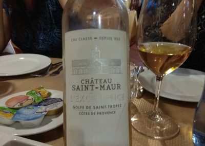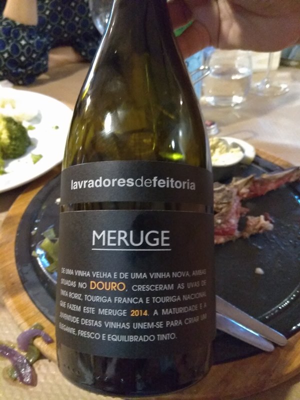 Time to choose the wines and we accept the suggestion of a French white wine, made by a Portuguese oenologist they said, that supposedly belonged to “Quinta do Pessegueiro”, the wine Chateau Saint Maur 2011 of Côtes de Provence, 13 degrees of alcohol elaborated from the grape varieties cinsault, grenache and syrah. For the more robust dishes, the Douro Meruge 2014 wine from the “Lavradores de Feitoria”.