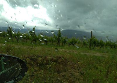 And it starts to rain. We find Mr. Jorge, the person responsible for the viticulture of the farm: they are working on grafting and harvesting a new vineyard (mostly Tinta Roriz) and we have received a small lesson on this subject …