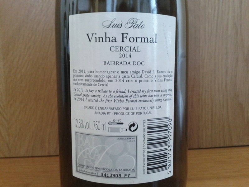 Primeiro Vinha Formal da casta cercial. E que vinho! Aroma muito fino e mineral. Na boca é de uma finesse aristocrática como muito poucos: mineral, alguma fruta e pouca barrica, corpo q.b. e acidez perfeita, final longo e seco. Que pena não ter comprado mais garrafas!!!! Para beber já ou para guardar.